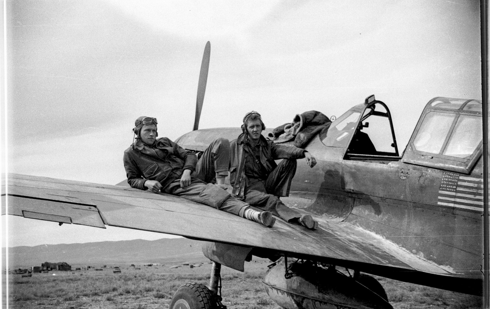 Photo: Lt. James Raddin, US Army Air Corps, with his P-40 Warhawk (“Kate”), Tunisia — January 1943 (Operation Torch).